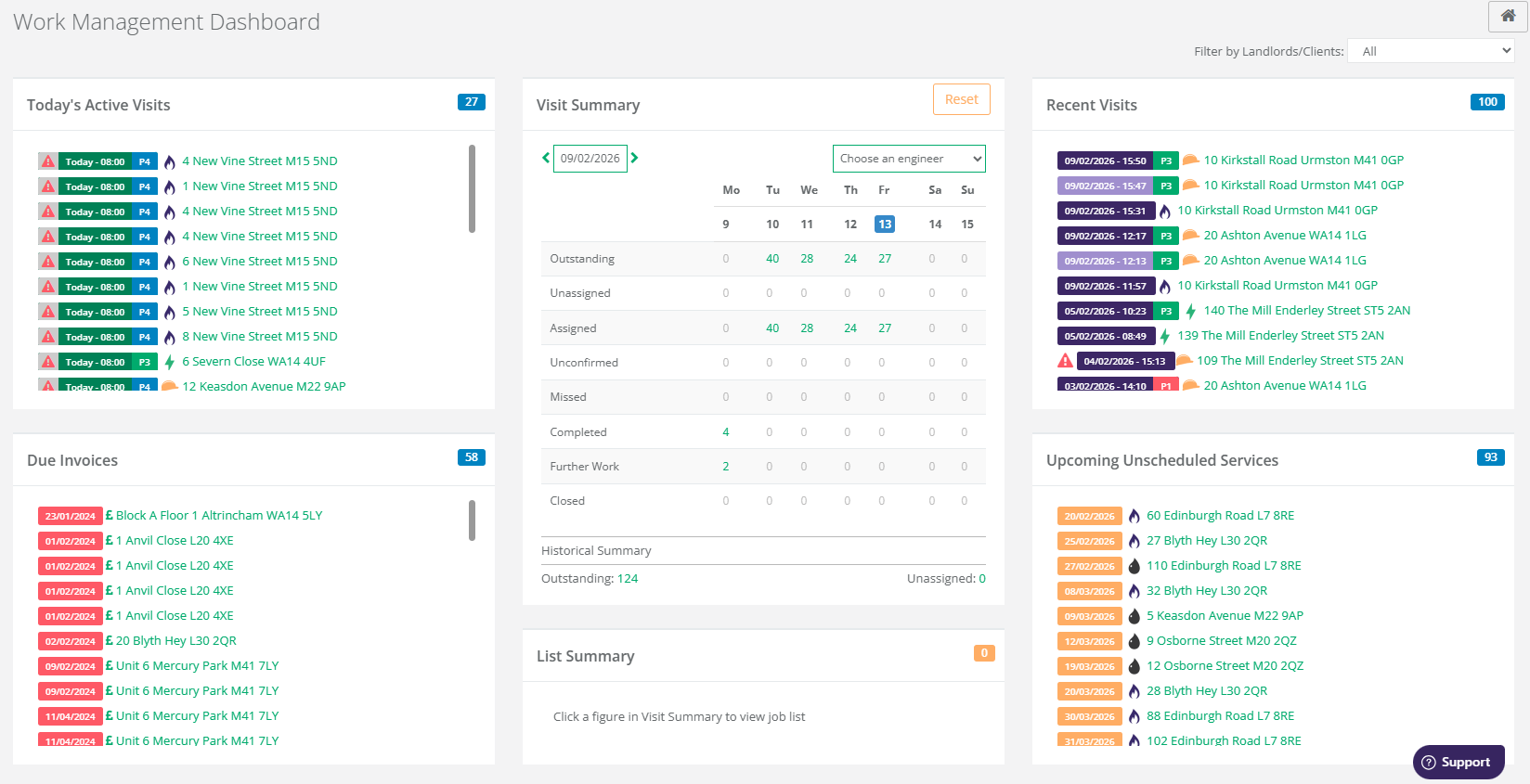 The page can be filtered down using the drop down in the top right corner. This allows you to switch the view between all properties, private properties, or landlord properties.