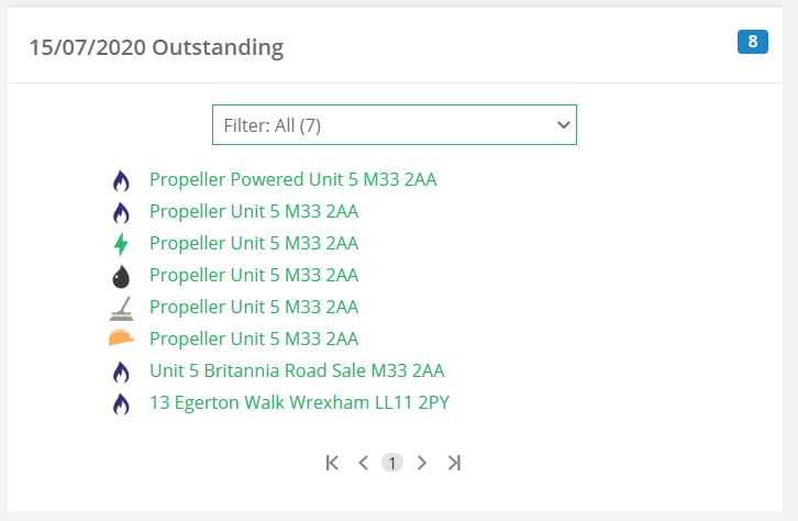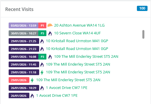 | Visits which have been assigned to an engineer. This is always accompanied by a status symbol – in this instance, the visit has been started by the engineer. |