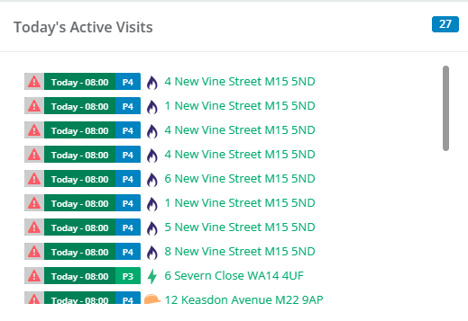 The top left displays the total number of visits that will be taking place today. You are able to scroll through the widget to see all visits.
