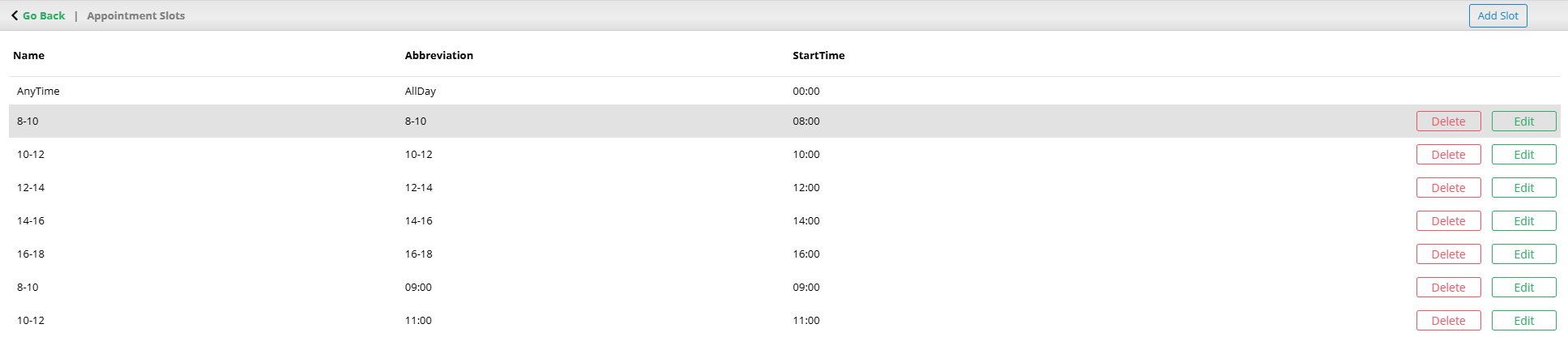 Appointment Slots
