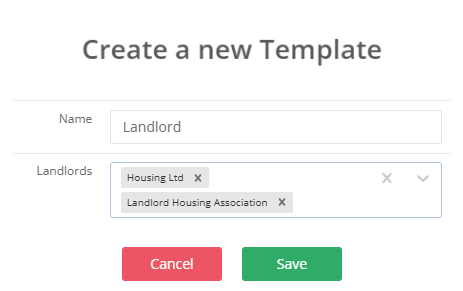 Here, you can name the template and select the landlords the template applies to. Multiple landlords can be selected per template.