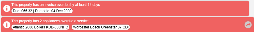 You will also be notified if there are any overdue invoices or overdue appliance services.