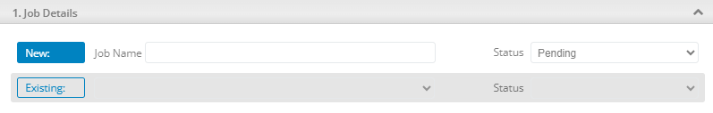 If creating a new job you can give it a name and assign a status to it. By default these will be blank. If it is for an existing job, you can choose a job from the drop down and edit the status.