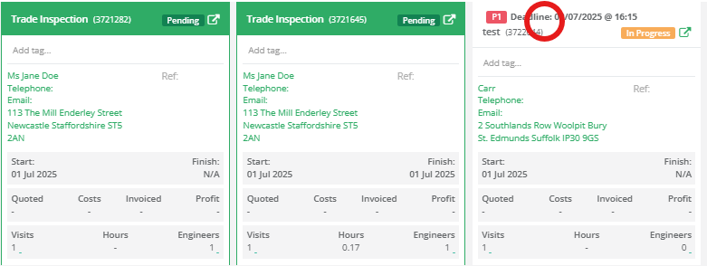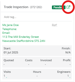 Clicking into any job from the list will open its full details, where you can view associated visits, status updates, costs, and job history.