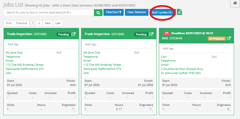 You can quickly apply changes to multiple jobs using the Bulk Update tool.