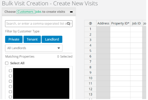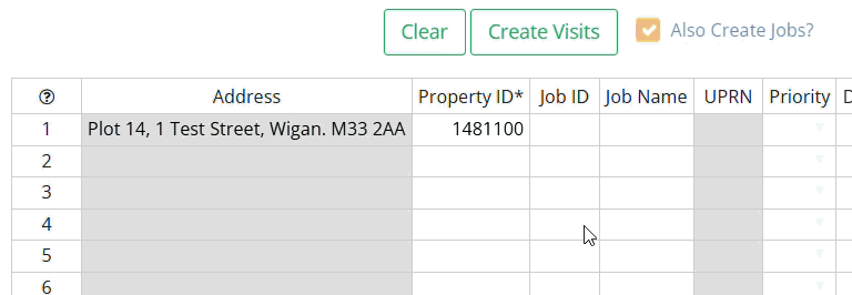 If one address requires multiple visits, select the 'Property ID' in the creator and hold and drag the square shown when it is highlighted. This will add the rows required for the visits.