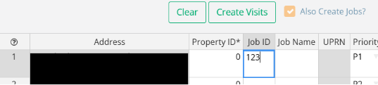 Visits can either be assigned to pre-existing jobs, or added to new ones. To add a visit to a job, enter the job ID to the 'Job ID' column.