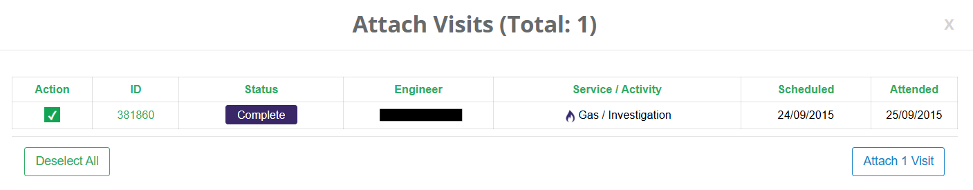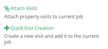 Once a job has been chosen, assign the visit to be attended by multiple engineers. There are two ways to do this, either with Attach Visits or Quick Property Creation. These can be found to the left of the job.
