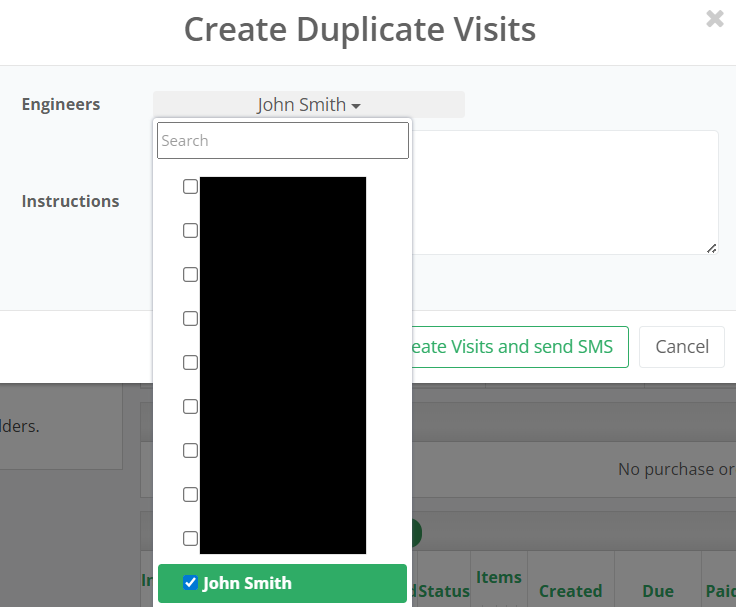 Once Send As Visit is selected, multiple engineers can be selected via the drop down.
