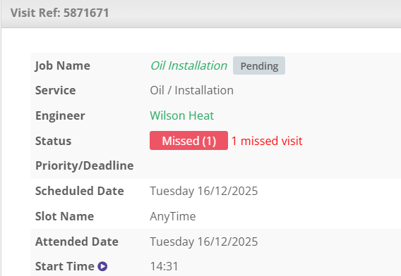 When a visit is missed, it’s important to clearly note what happened. This includes recording the scheduled date and time, the location, the engineer assigned, any attempts to contact the customer, and the reason the visit couldn’t be completed. Keeping these details helps everyone understand what occurred and ensures the process stays transparent and consistent.