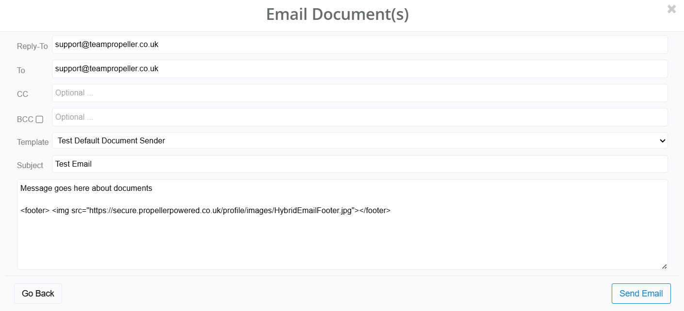 The Reply-To box allows you to specify who the email is sent from. When selecting this box, it will give you the option to either send the email from your account or the organisations email address. You can also enter this address manually.