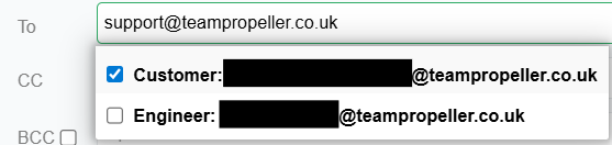 This is similar to the To box which allows you to select either the customer at the property where the job/visit was completed, or the engineer who did the works. This can also be entered manually.